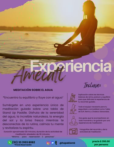 Cada recorrido está guiado por instructores capacitados y se desarrolla en entornos seguros, tranquilos y espectaculares. Además, ofrecemos sesiones especiales de meditación flotante y actividades grupales ideales para familias, parejas o eventos especiales.