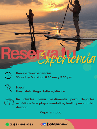 En Hopaki, diseñamos nuestras experiencias para todo tipo de personas: desde quienes buscan relajarse y reconectar con la naturaleza, hasta los más aventureros que desean explorar la presa en kayak o paddle board.